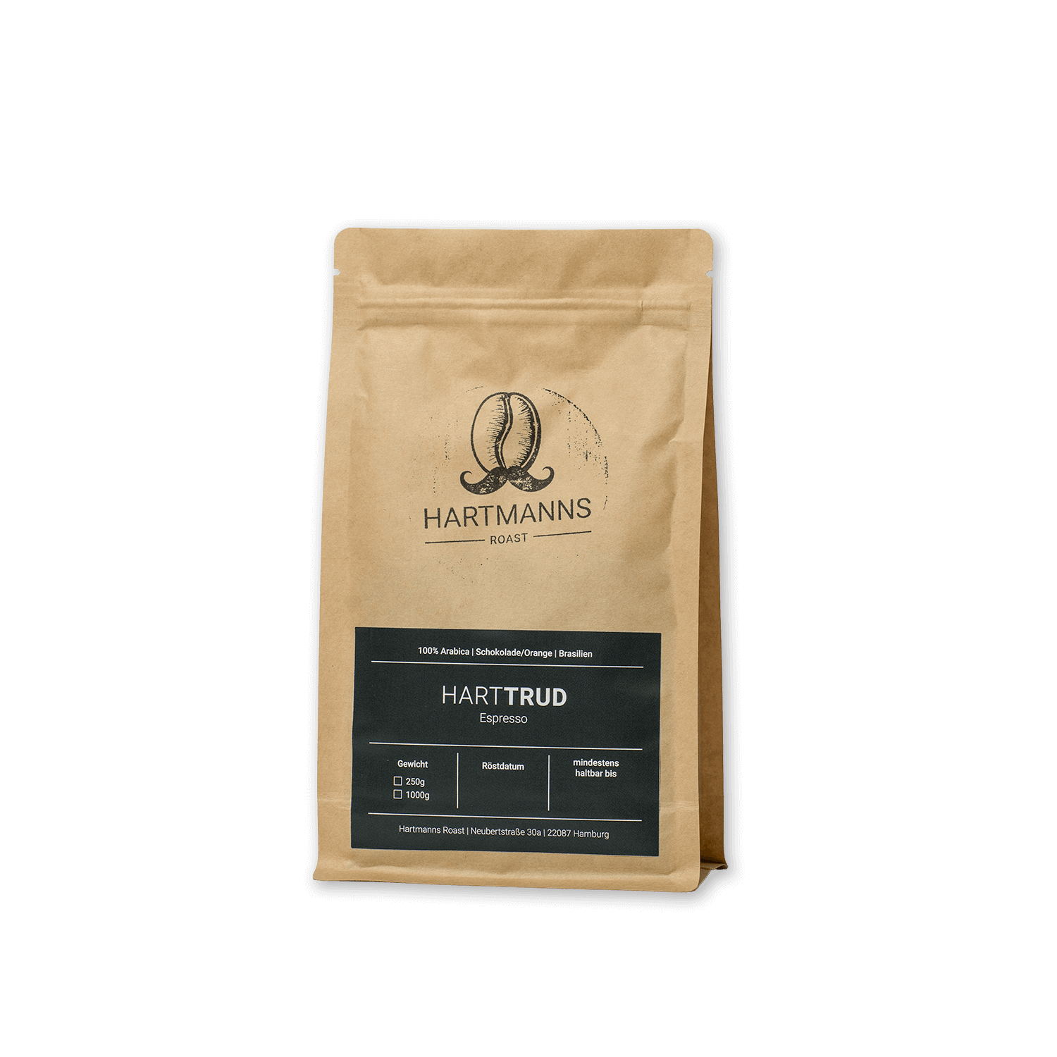 Wenn HartMut der Charmante ist, dann ist HartTrud seine klare, souveräne Frau – dunkler geröstet, brasilianischer Single Origin und ebenfalls frisch von Hand in kleinen Batches verarbeitet.